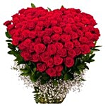 Valentine's Day Special, Camp Heart Shaped Bouquet - 100 Charming Red Roses, 1 pc