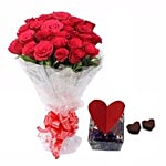 No Question askedTeddy's Day Special, Blooms & Bouquets Combo - 20 Charming Red Roses Bouquet & Premium Assorted Chocolate Box