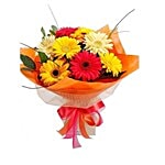 Part of the sunflower family, these 8 gerbera wrapped in crepe paper is a very cheerful flower that can brighten anyones day!
