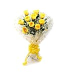 A bouquet of 12 Yellow Roses and seasonal fillers wrapped in cellopahe paper. This Bouquet will definitely put a bright and beautiful smile on his/her face and remind them of you always.