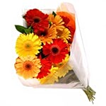 This Bunch of 12 gerberas in mixed colours wrapped in cellophane represent the agility associated witty life. They sparkle up the surroundings where they go.