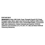 Contains Milk Ingredients: Water, Milk Solids, Sugar, Pineapple Squash (6%) {Sugar, Pineapple Cubes, Water, Apple Juice Concentrate, Stabilizer (440), Acidity Regulator (330) & Food Colour (102)}, Coconut Milk Powder (1%) {Coconut Milk Solids, Maltodextrin, Sodium Caseinate And Stabilizer (339(Iii))}, Stabilizers And Emulsifiers (412, 410, 407, 471, 466) And Nature-Identical Flavouring Substances.